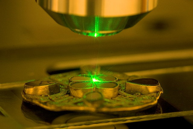 The conservation research laboratory has a wide range of chemical and physical examination methods at its disposal, which are adapted to the needs of research on valuable cultural objects. The following non-destructive or minimally invasive examination methods are available in the conservation research laboratories: Micro X-ray fluorescence spectrometry (µ-XRF), Fourier transform infrared (FTIR) and Raman spectroscopies, atomic absorption spectrometry, as well as stereomicroscopy with digital documentation (incident light, transmitted light, fluorescence, polarization). The multidisciplinary team has special expertise in the analysis of pigments, glass, stone, alloys, corrosion products, and conservation products such as adhesives and binders. Other activities include material testing, pollutant and biocide measurements, and the further development of conservation methods.
